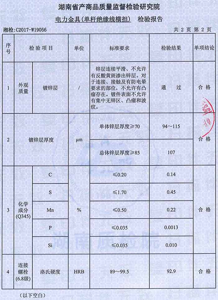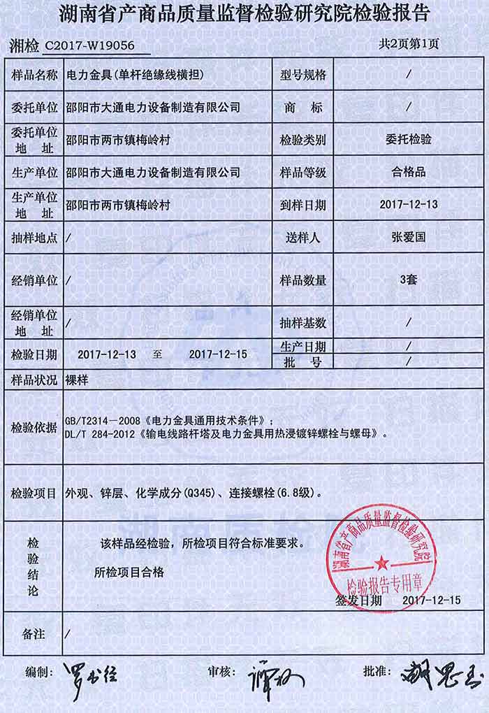 單桿絕緣線橫擔檢驗報告